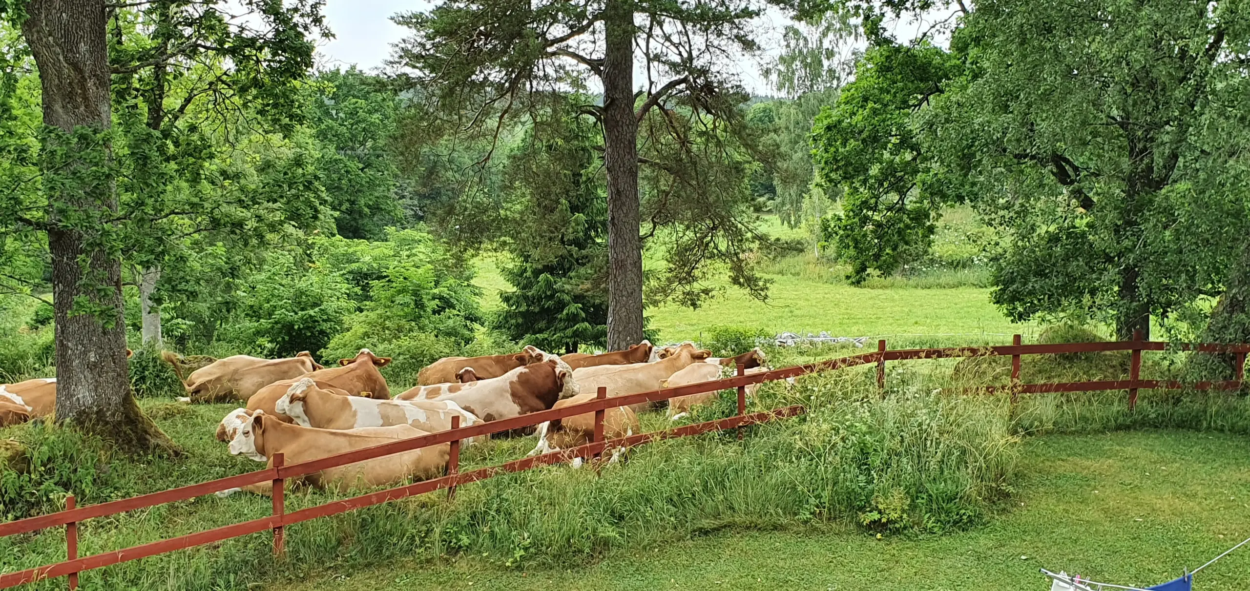 För oss är avelsintresset centralt så därför ville vi ha en renrasig besättning och valet föll på rasen Simmental. En ras med sitt ursprung i Schweiz där en dal med samma namn har fått ge rasen sitt namn. De första djuren importerades till Sverige 1974 och rasen har sedan vuxit i Sverige. Genom sitt ursprung som kombinerad mjölk/köttras är det den köttras i landet som har den absolut högsta mjölkavkastningen till kalven, därav de högsta avvänjningsvikter och ettårsvikter under många år i köttboskapskontrollen KAP. Rasen räknas till de tyngre köttraserna där medelvikten för fullvuxna kor ligger på ca 750-800 kg och fullvuxna tjurar 1250 kg. Rasen passar både som fader- och moderras i olika korsningskombinationer inom den självrekryterande köttproduktionen – en komplett köttras.
